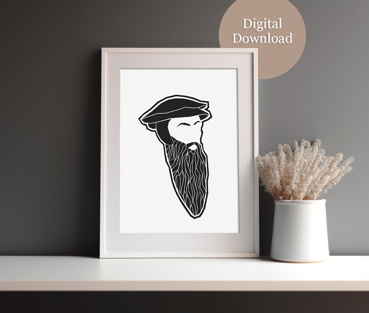 John Calvin Stylized Outline Minimalistic Wall Decor Reformed Theology Download Now Etsy
